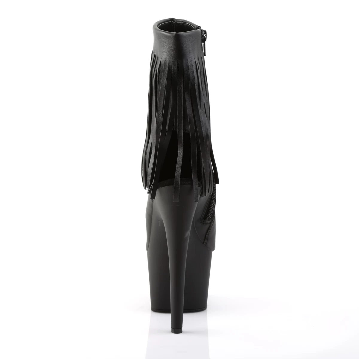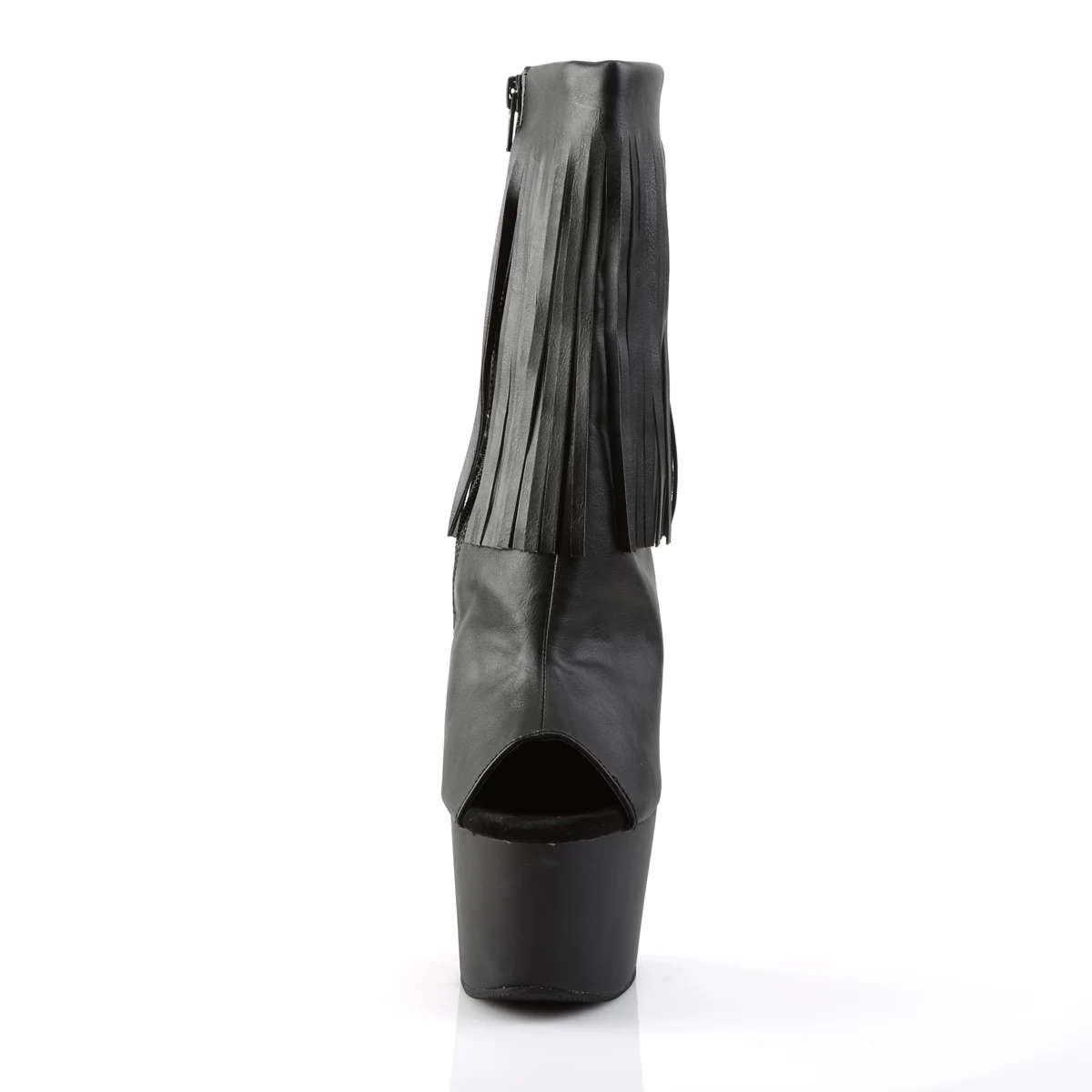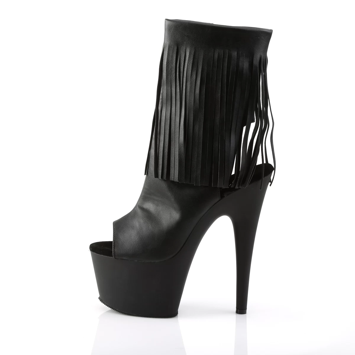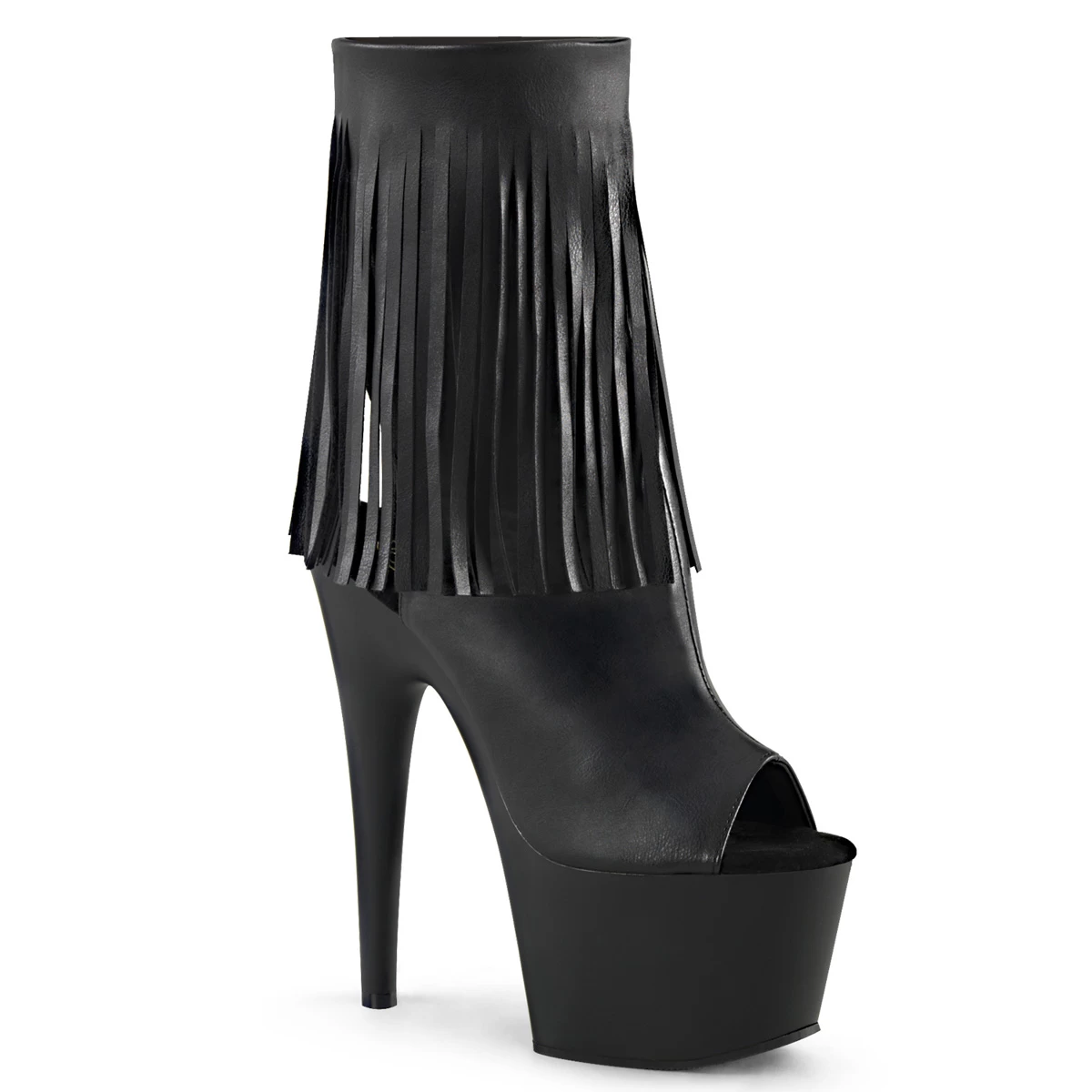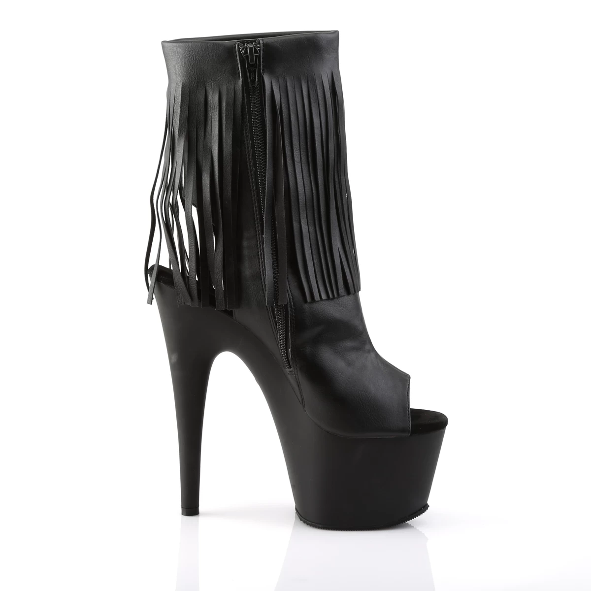 7″” (17.8cm) Stiletto Heel, 2 3/4″” (7cm) Platform Open Toe/Stiletto Heel Fringe Ankle Boot, Inside Zip Closure