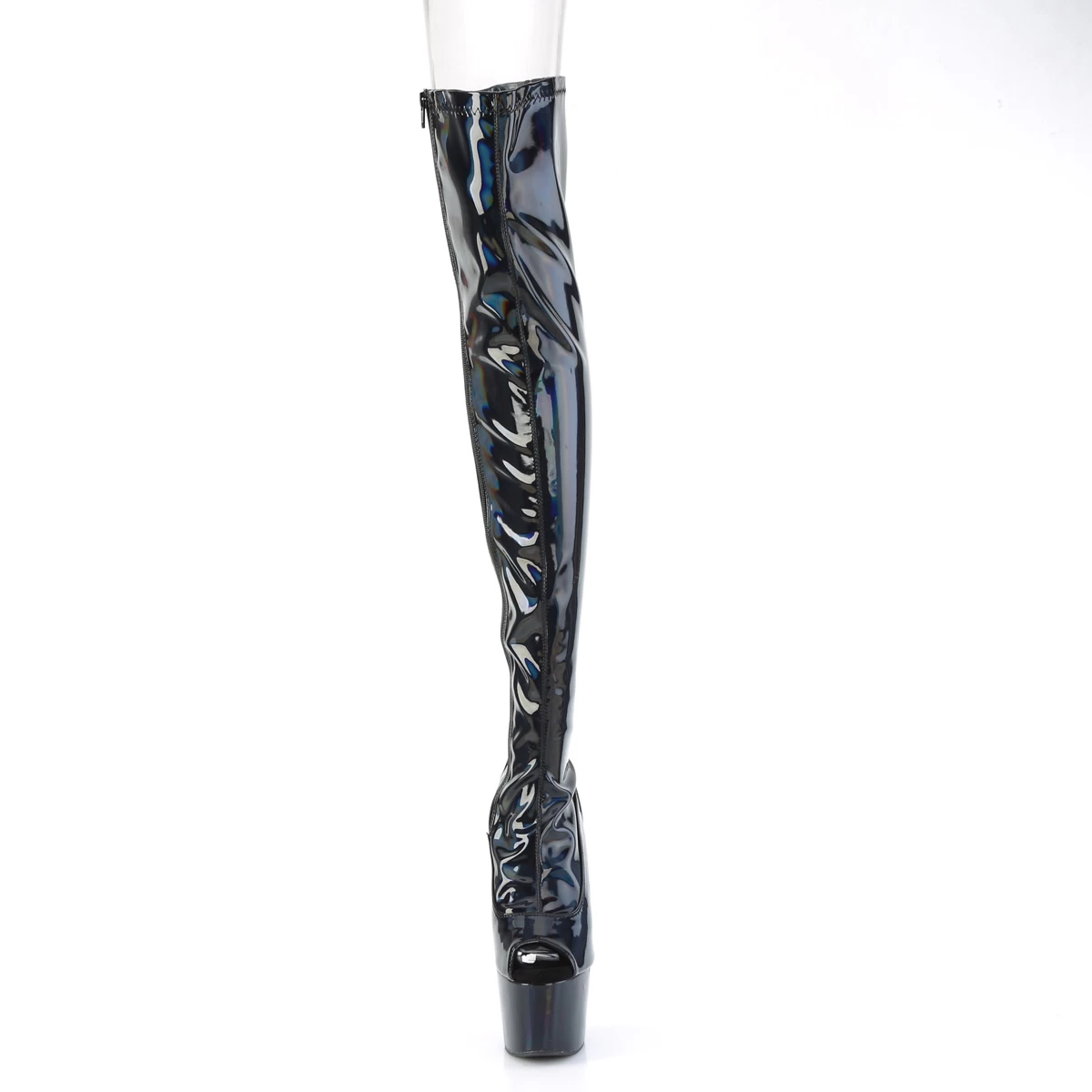 ADORE-3011HWR Black Stretch. Holo/Black Holo, Thigh High Boots