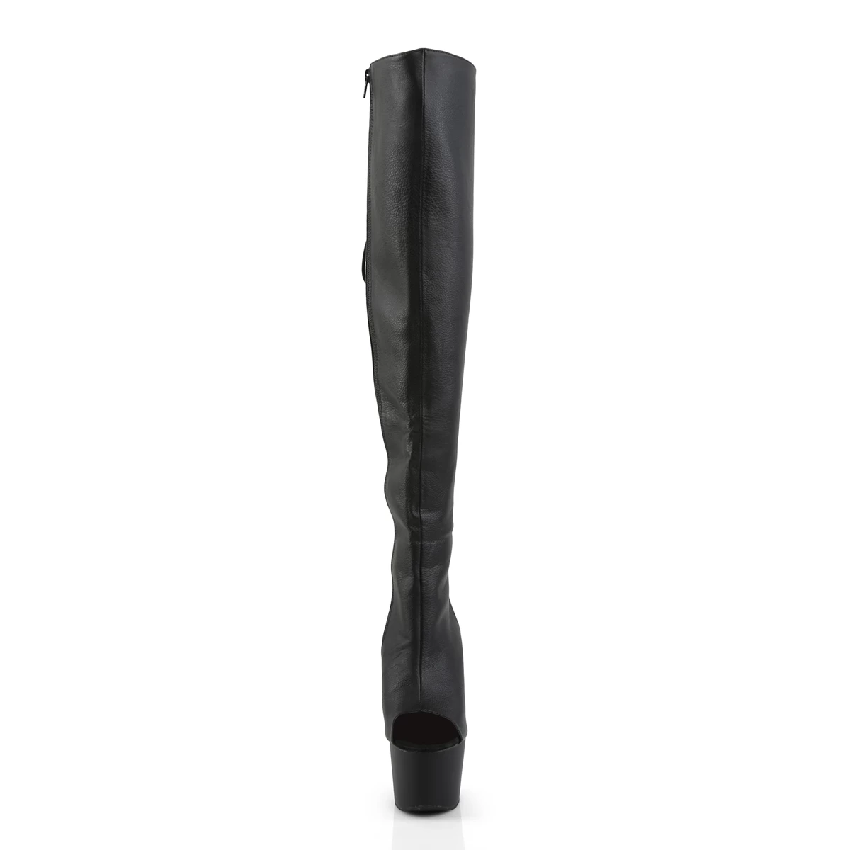 7″” (17.8cm) Stiletto Heel, 2 3/4″” (7cm) Platform Open Toe/Stiletto Heel Back Lace-Up Thigh High Boot, Full Side Zip Closure