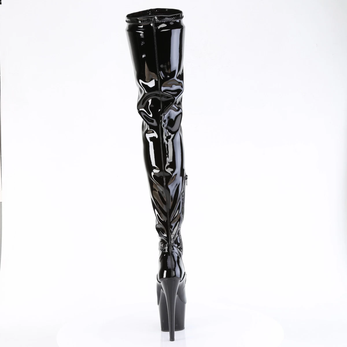 ADORE-4000 Black Stretch. Patent/Black, Crotch/Chap Boots, 7″ (178mm) Heel, 2 3/4″ (70mm) Platform Stretch Crotch Boot, 1/2 Length Inner Side Zip Closure