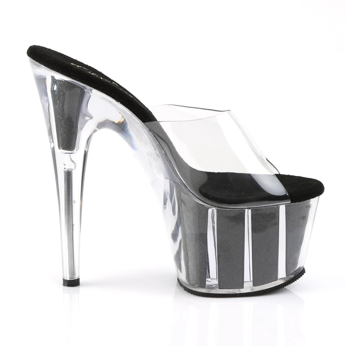 7″” (17.8cm) Stiletto Heel, 2 3/4″” (7cm) Platform Slide, Glitter-filled Platform