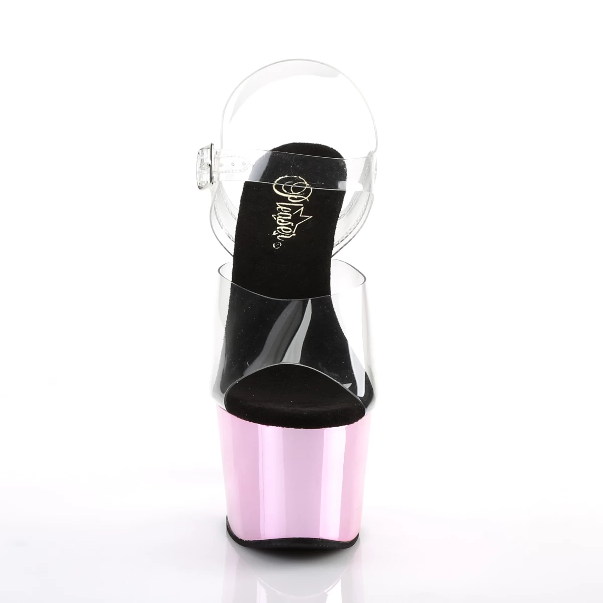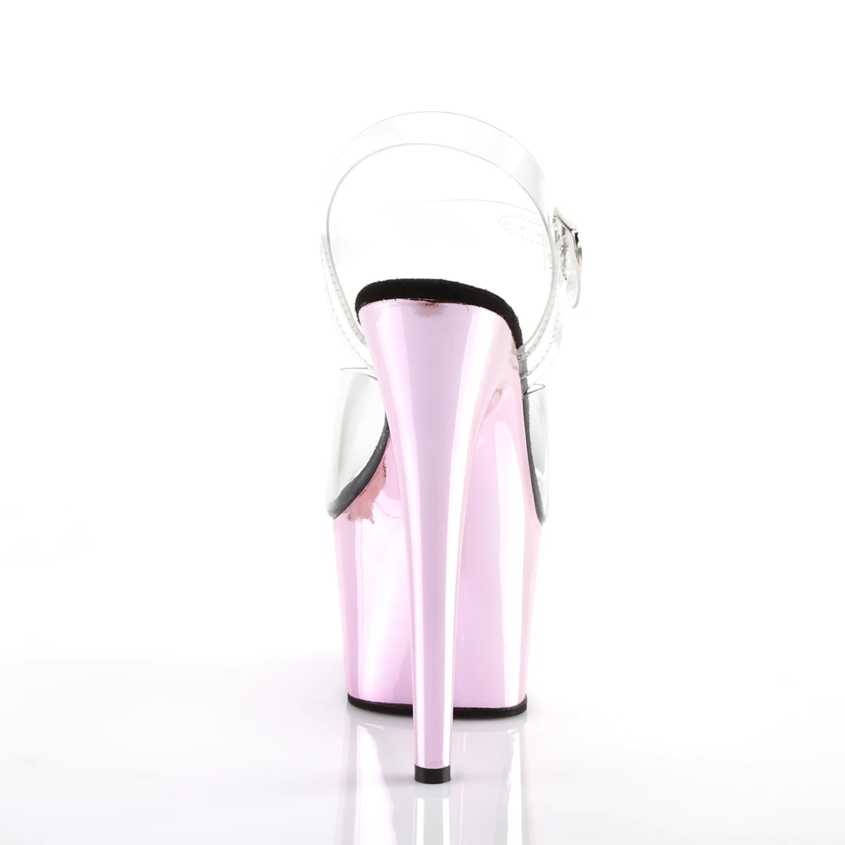 7″” (178mm) Heel, 2 3/4″” (70mm) Platform Ankle Strap Sandal w/ Chrome Plated Bottom