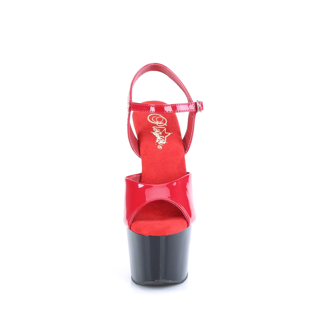 ADORE-709 Red Patent/Black, 7″ – 7 1/2″ Heel, 7″ (178mm) Heel, 2 3/4″ (70mm) Platform Ankle Strap Sandal