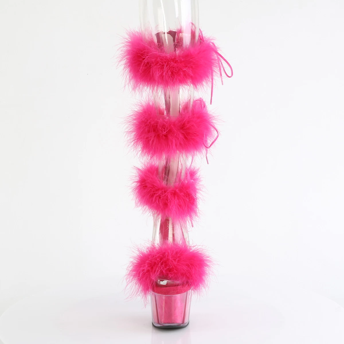 ADORE-728F Clear-H. Pink Fur/M, 7″ – 7 1/2″ Heel