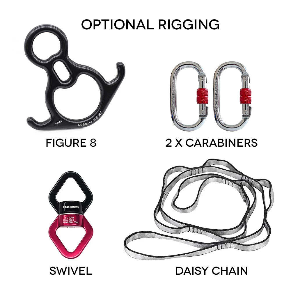 - 2 x steel carabiners (Rated 25kn)