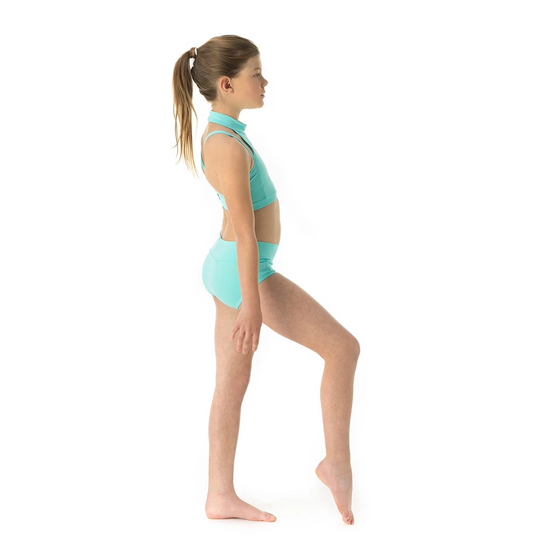 Kids’ high-waisted pole dance bottoms can also become low-waisted. Featuring soft lycra, this piece promises total comfort and ultimate freedom of movement. You can wear them with a matching diamond top.