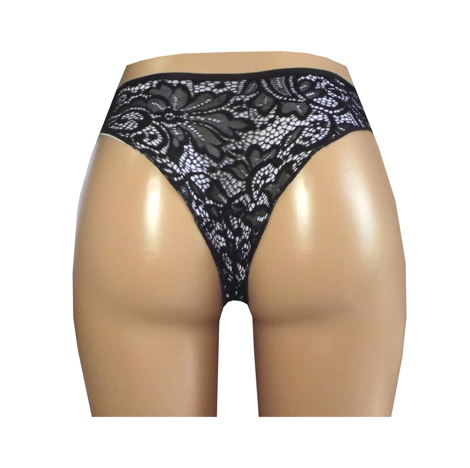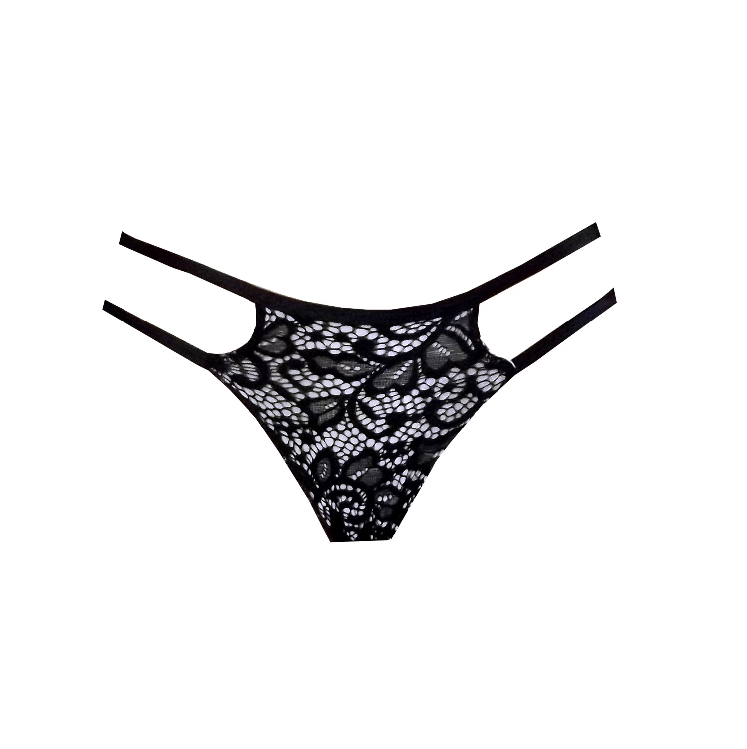 Look sexy in Rhapso Designs Black floral lace panty featuring ladder straps