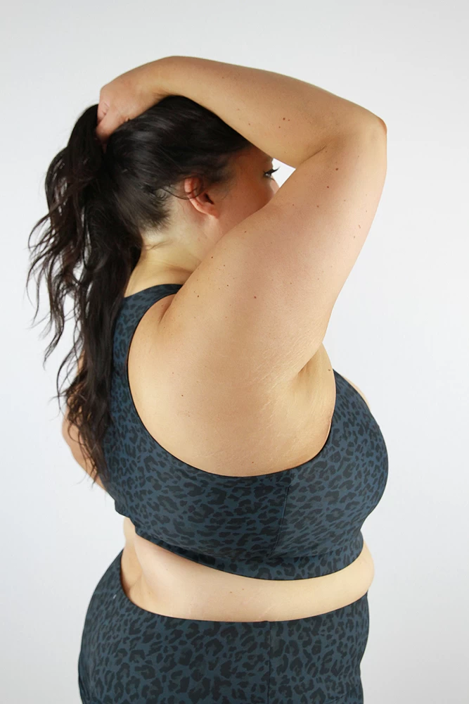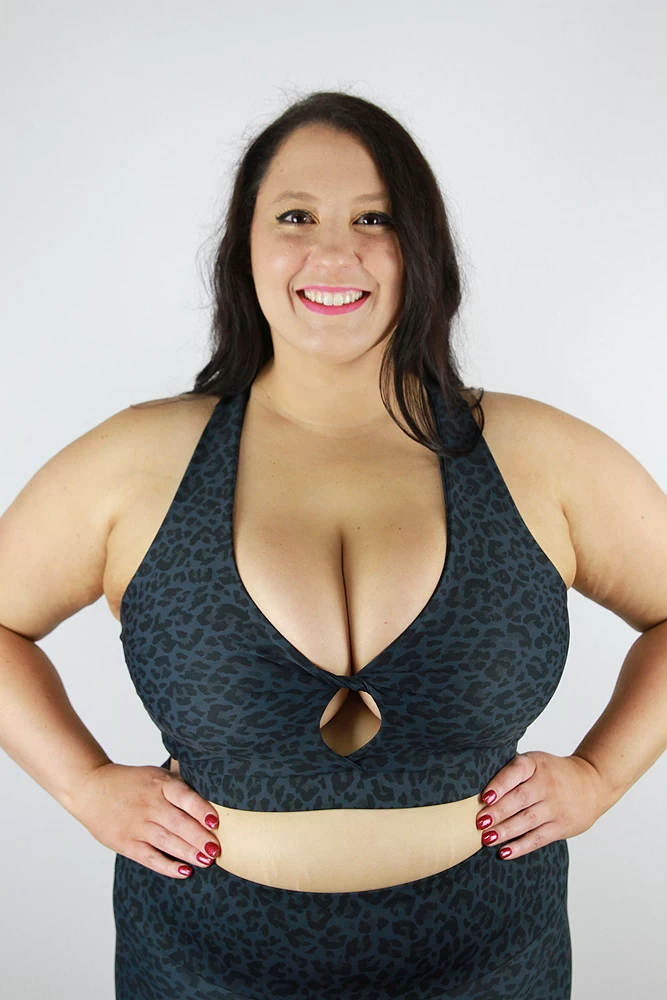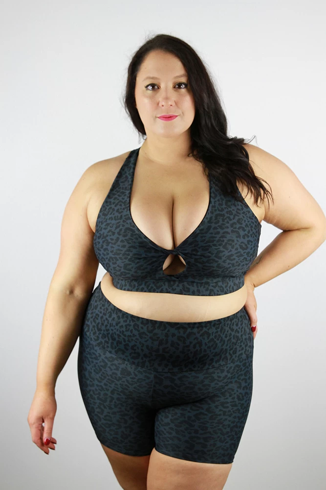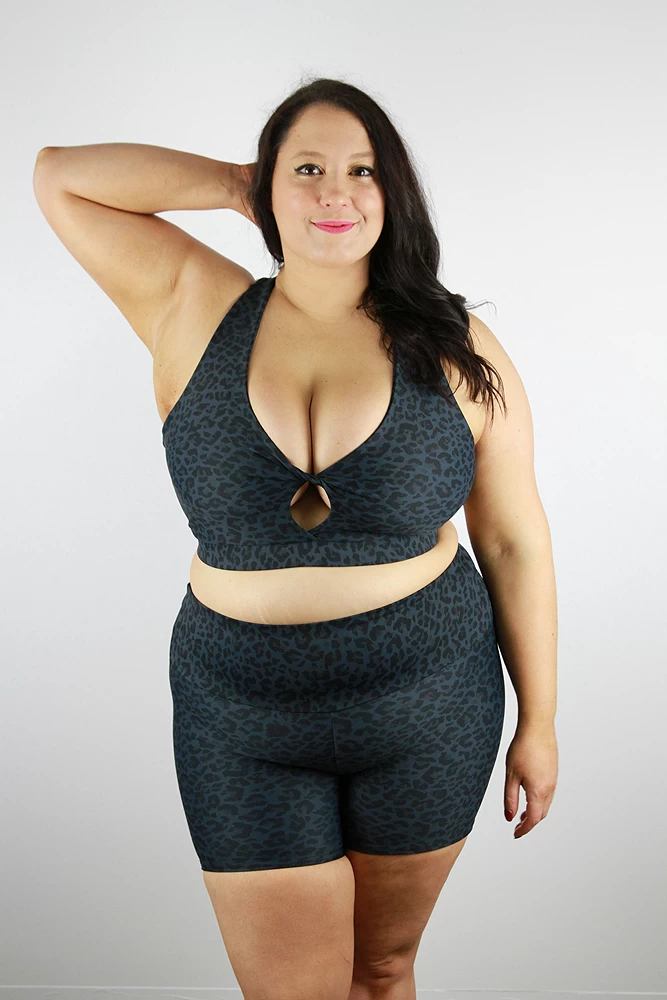 This Plus size knot bra with a cute knot bust detail is super flattering on all shapes and sizes. It’s suitable for all medium to high impact workouts making you feel very supportive and secure while working out. Pair it with the matching shorts. Available in selected prints