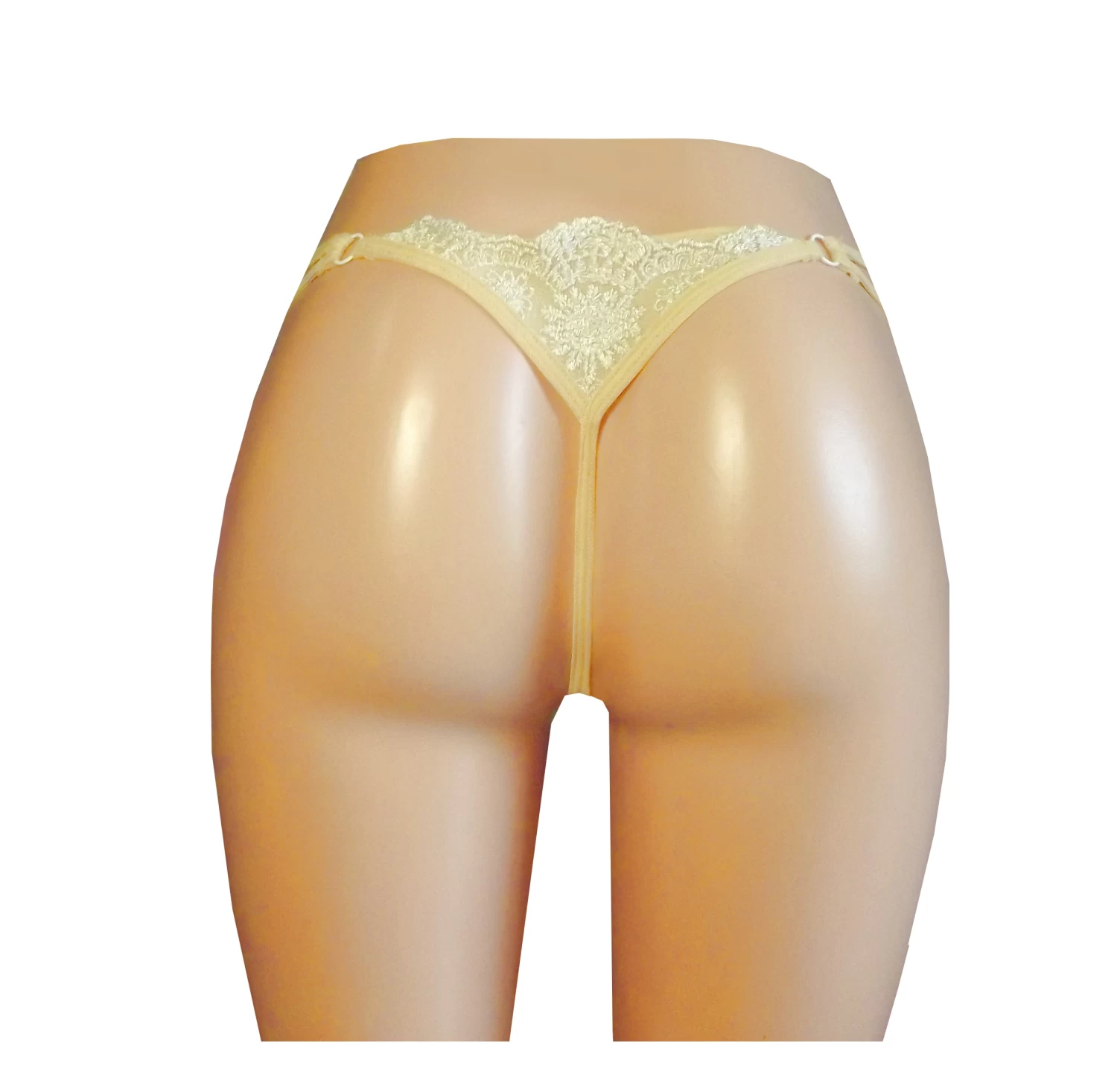 Bring sexy back in Rhapso’s delicate champagne lace tulle thong