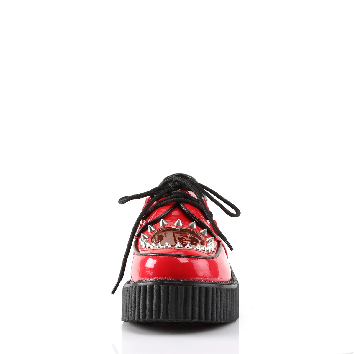 2″” (5.1cm) Platform Creeper Featuring See-Through Heart Cutout Design, D-Ring Lace, Pointed Studs and Piping Detail