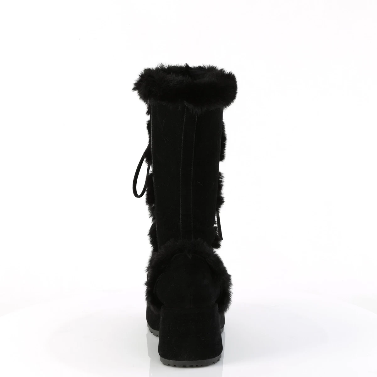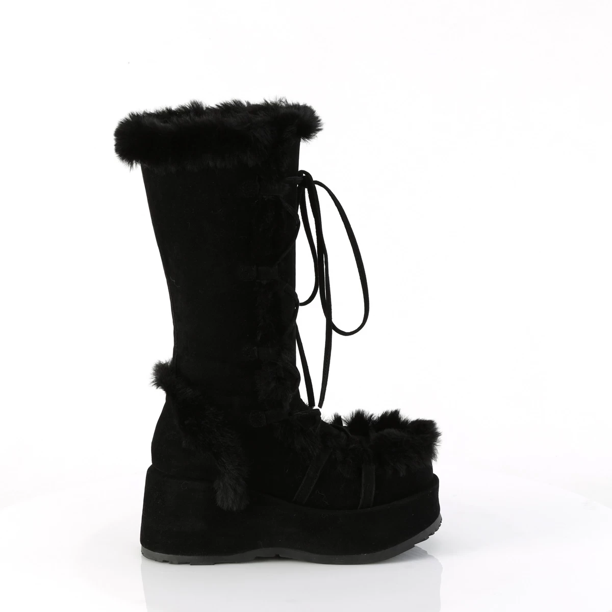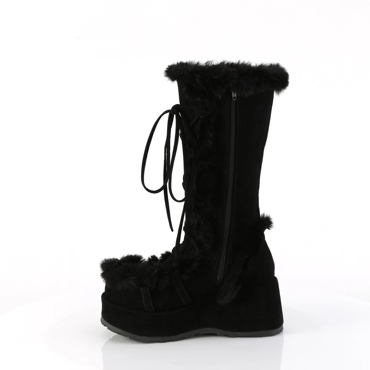 CUBBY-311 Black Vegan Suede, 2 3/4″ (70mm) Platform Lace-Up Mid-Calf Boot Featuring Faux Fur Trim Detail, Full Inner Side Zip Closure