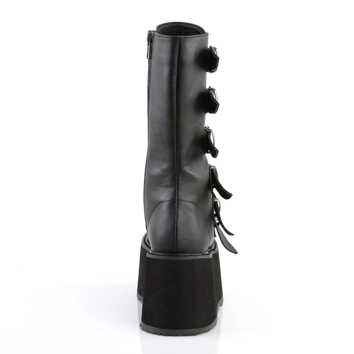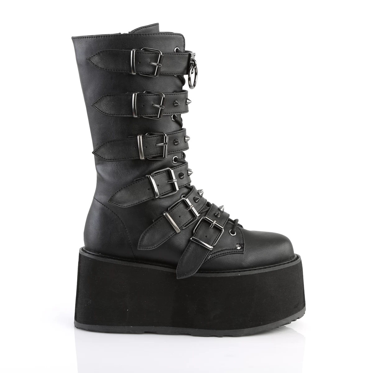 DAMNED-225 Black Vegan Leather 3 1/2″ PF Mid-Calf Bootw/6 BuckleStraps, Metal SideZip