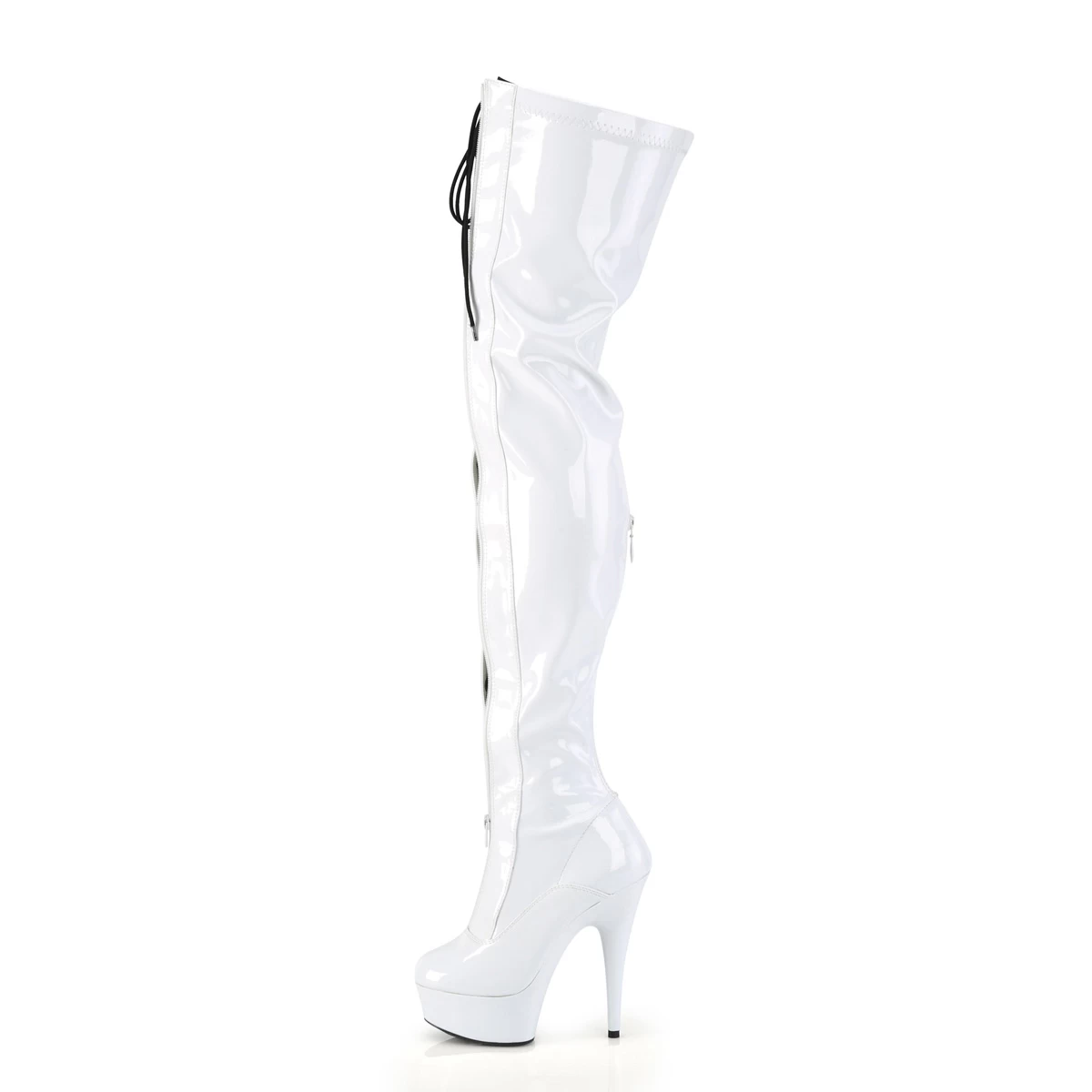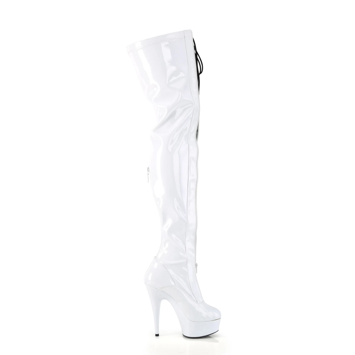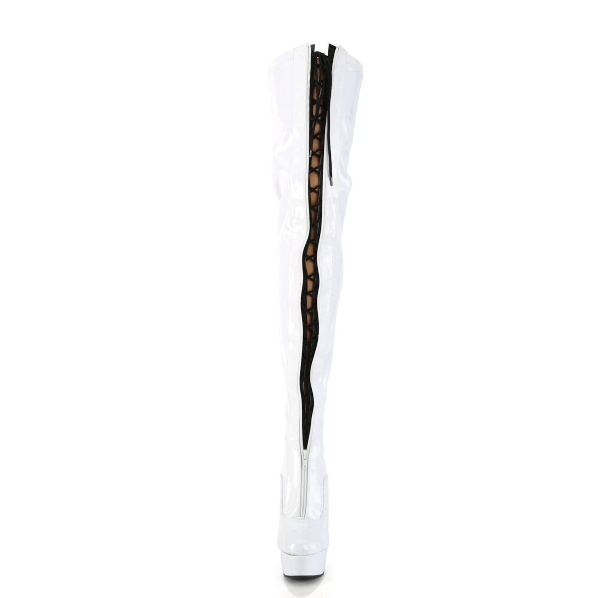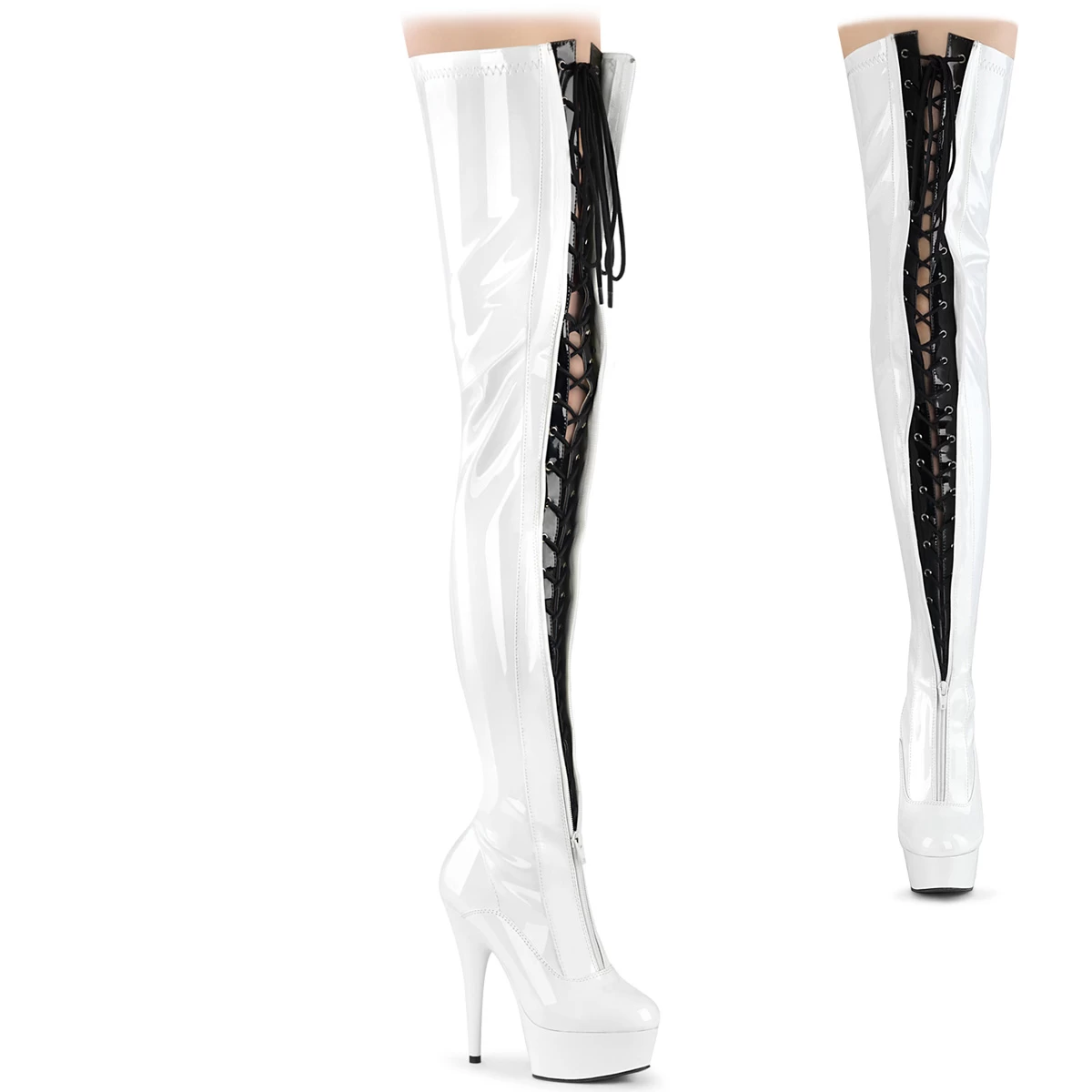 DELIGHT-3027 White-Black Stretch. Patent/White, Thigh High Boots
