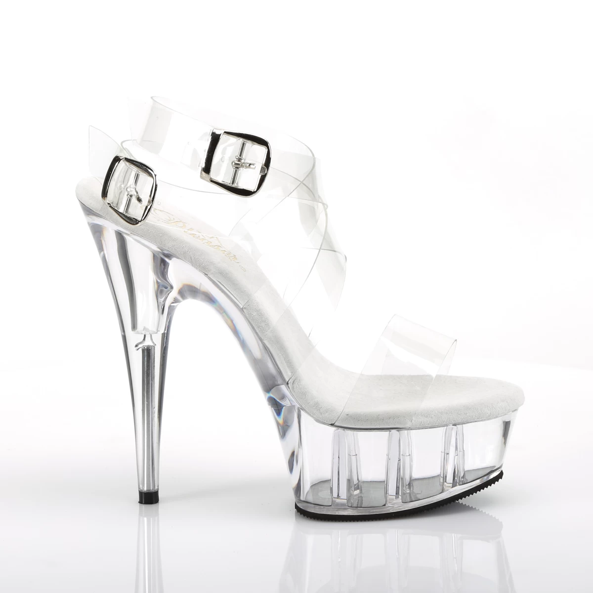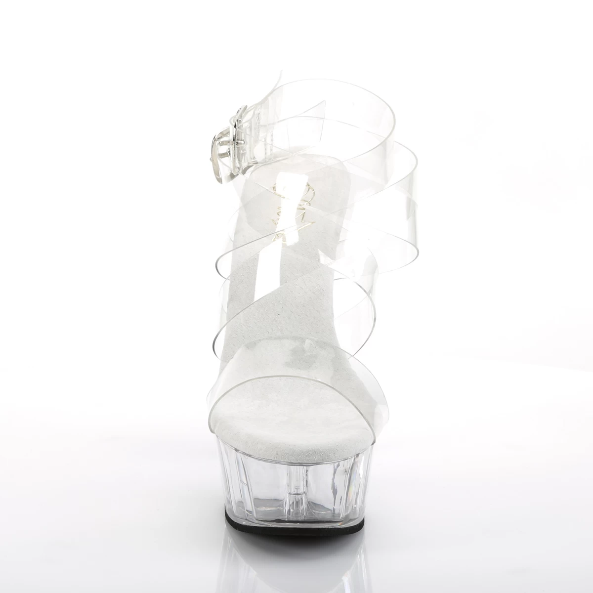 6″” (15.2cm) Stiletto Heel, 1 3/4″” (4.5cm) Platform Double Criss Cross Closed Back Sandal, Back Zip Closure