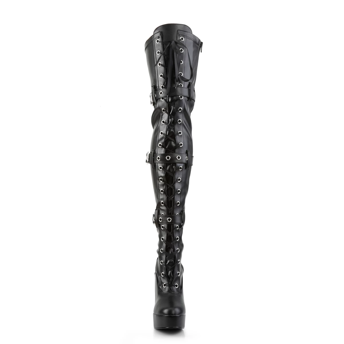 5″ Stack Heel, 1 1/2″ PF Front Lace-Up Thigh Boot