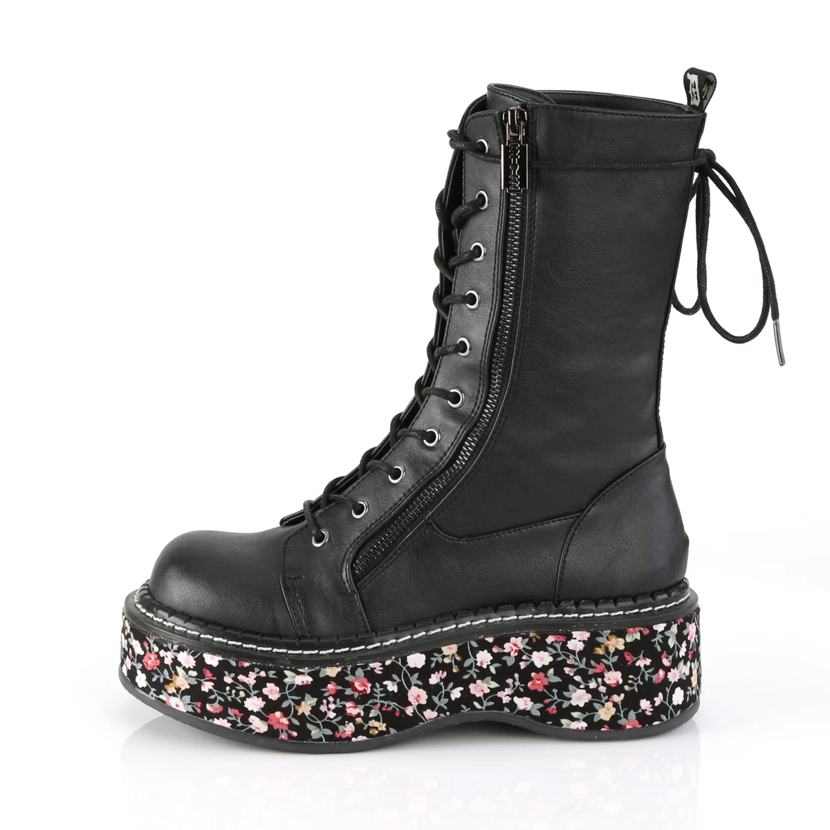 2″” Floral Fabric Wrapped Platform Mid-Calf Lace-Up Boot W/ Outer Metal Zipper & Razor Blade Zipper Pull