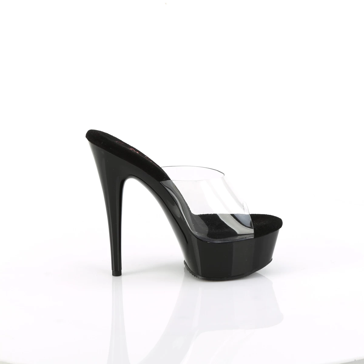 EXCITE-601 Clear/Black, 6″ – 6 1/2″ Heel, 6″ (152mm) Heel, 1 3/4″ (44mm) Platform Comfort Width Slide