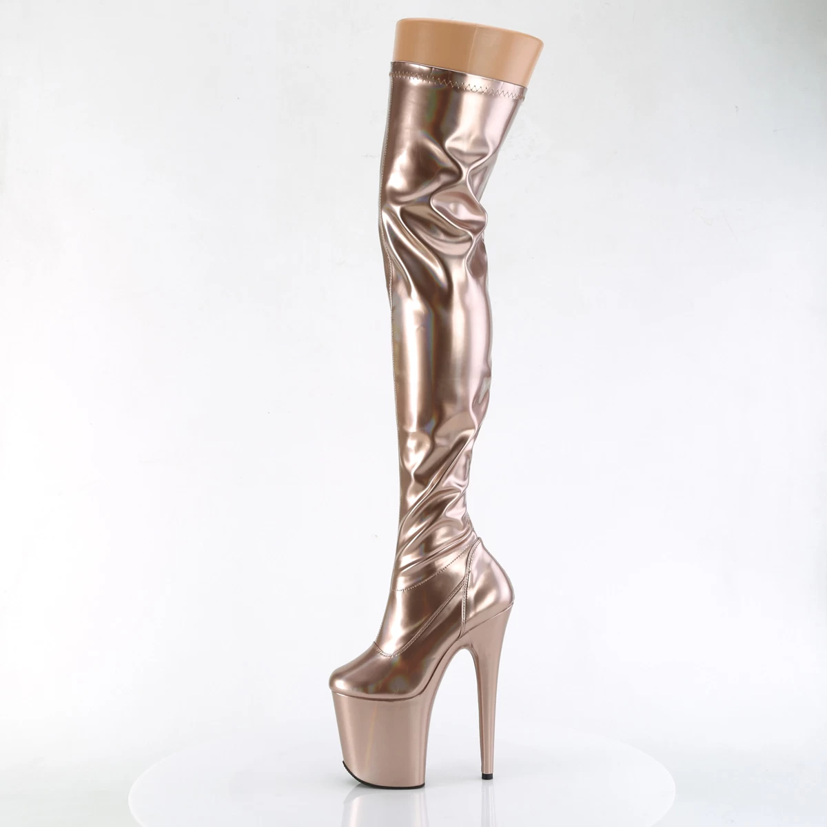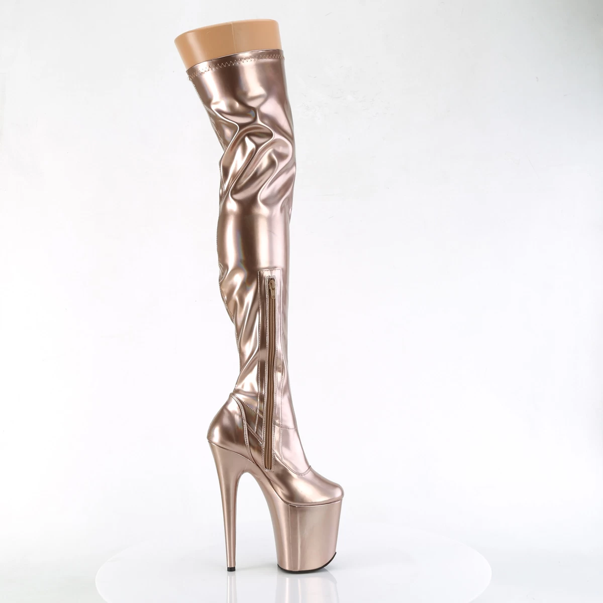 FLAMINGO-3000HWR Rose Gold Stretch. Holo/Rose Gold Holo, Thigh High Boots