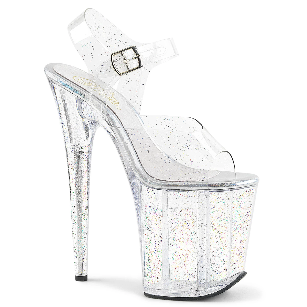 8″ Heel, 4″ PF Ankle Strap Sandal w/Glitter