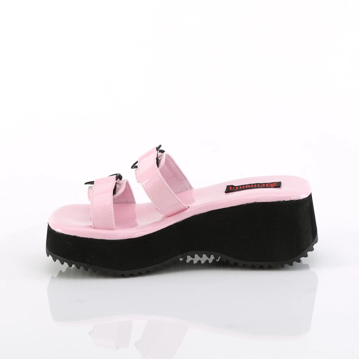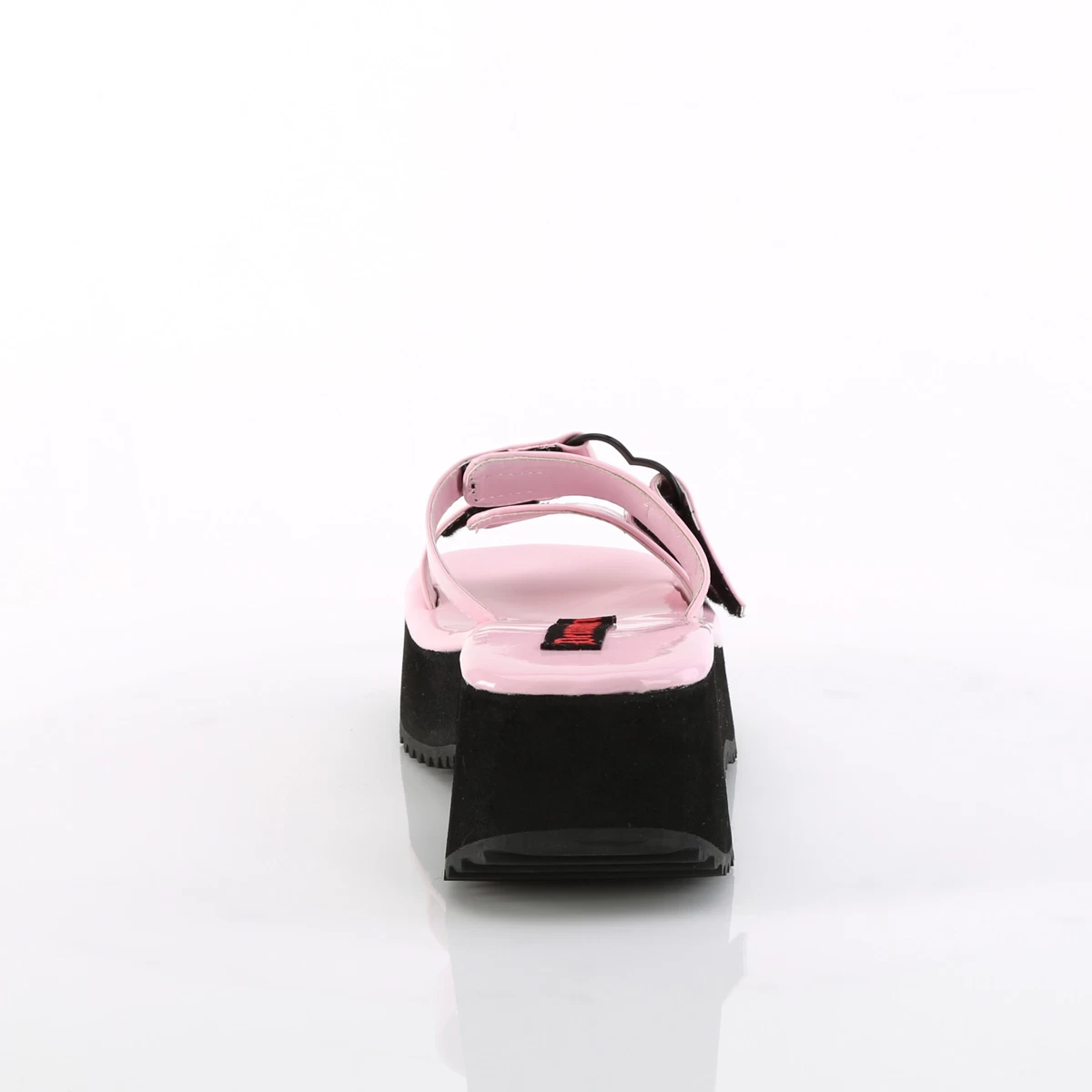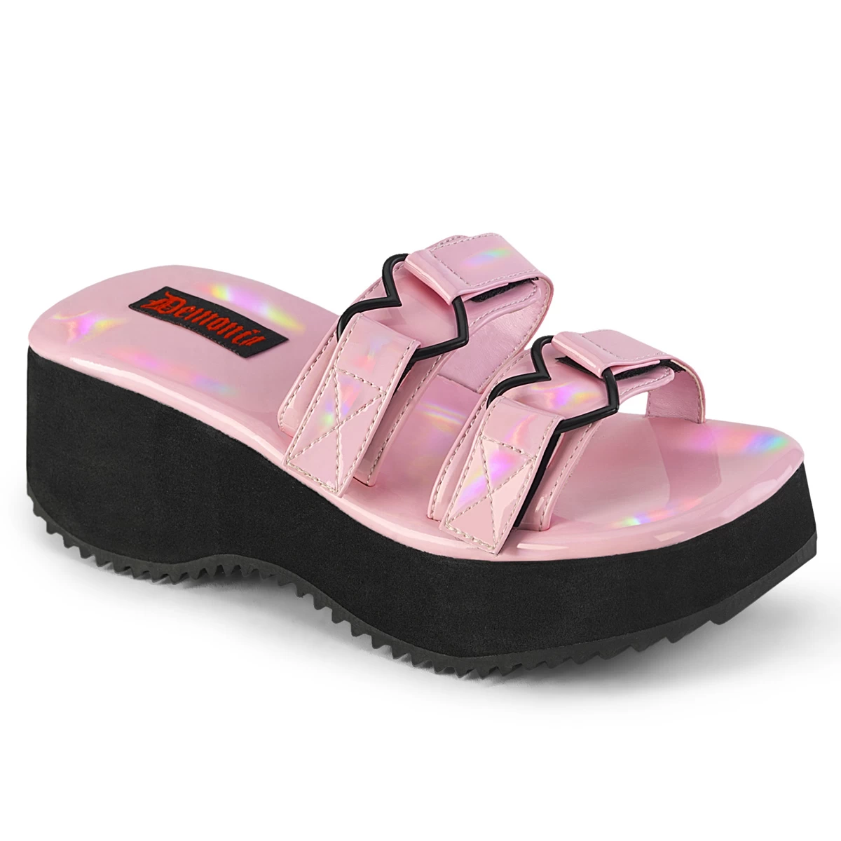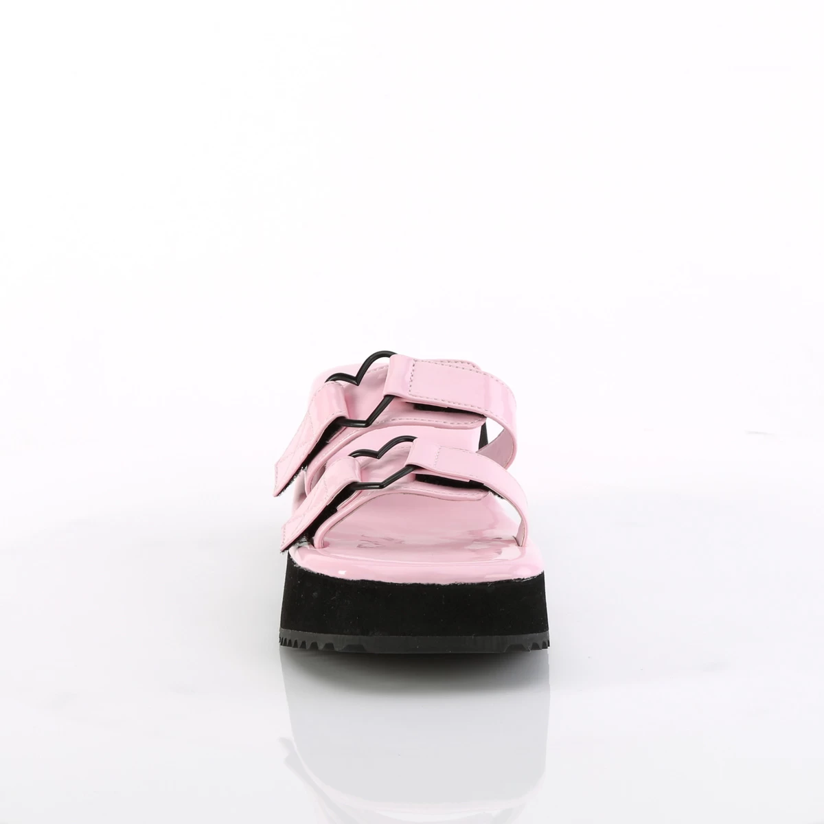 FLIP-12 Baby Pink Holo Patent, 2 1/2″ (64 mm) Platform Two Band Hook N’ Loop Slide Sandal Featuring Heart Ring Detail
