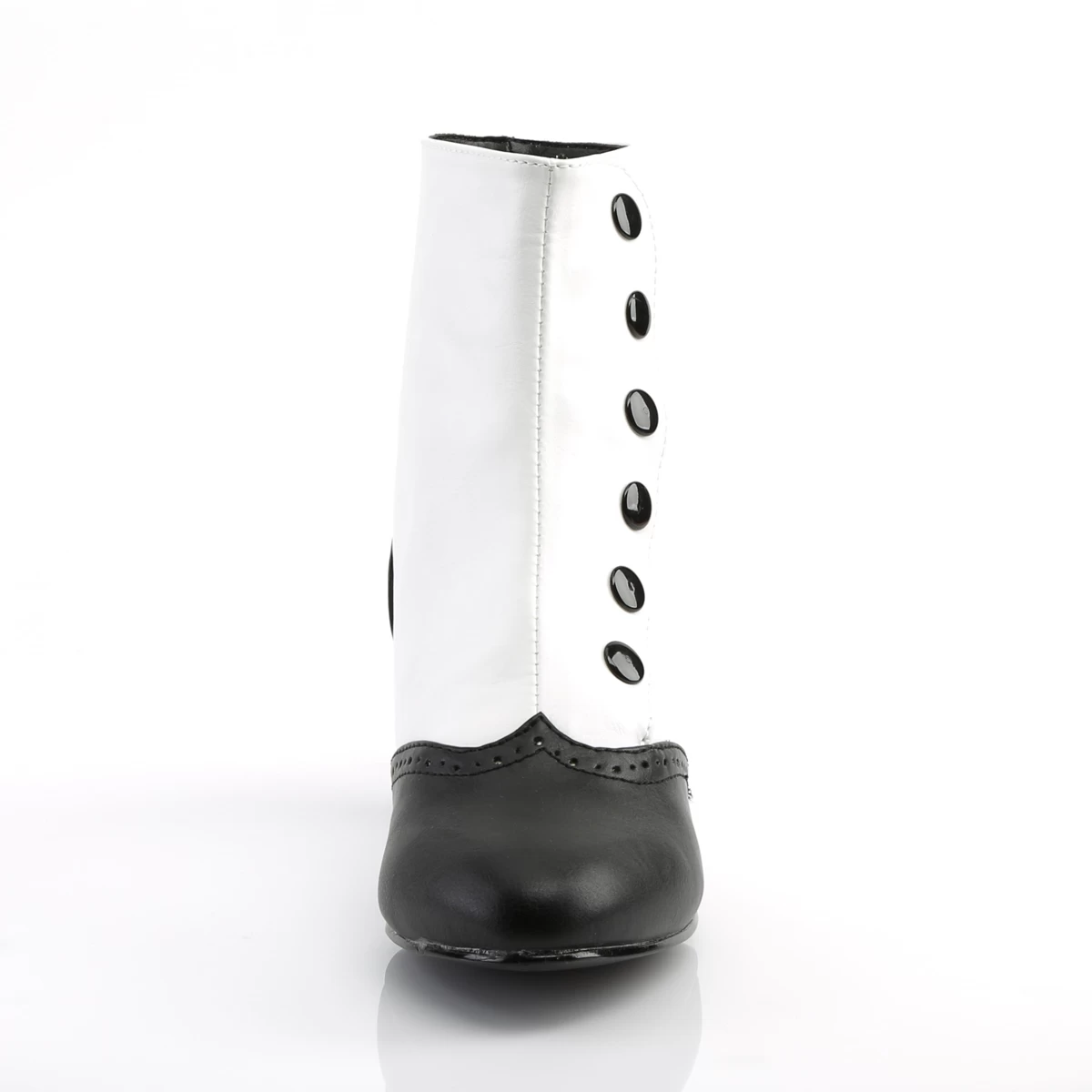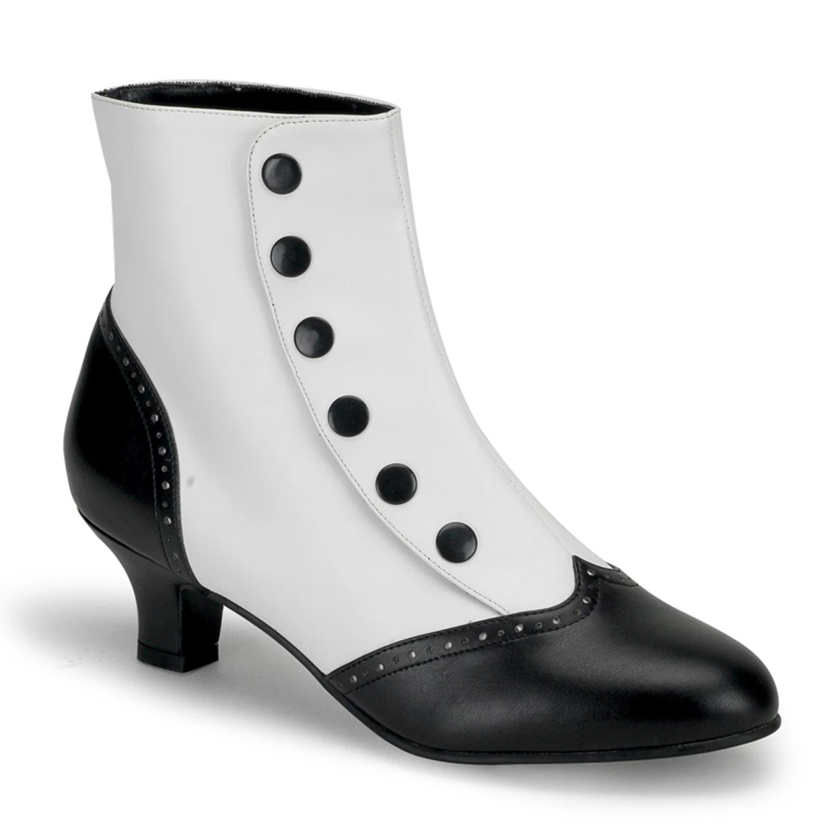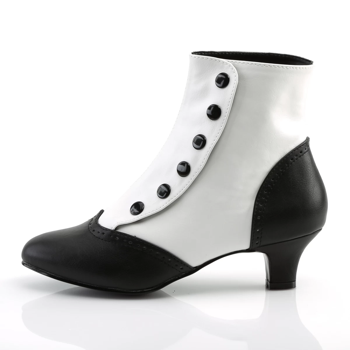 2″” (5.1cm) Heel, Two-Tone Button Snap Spat Ankle Boot, No Zipper