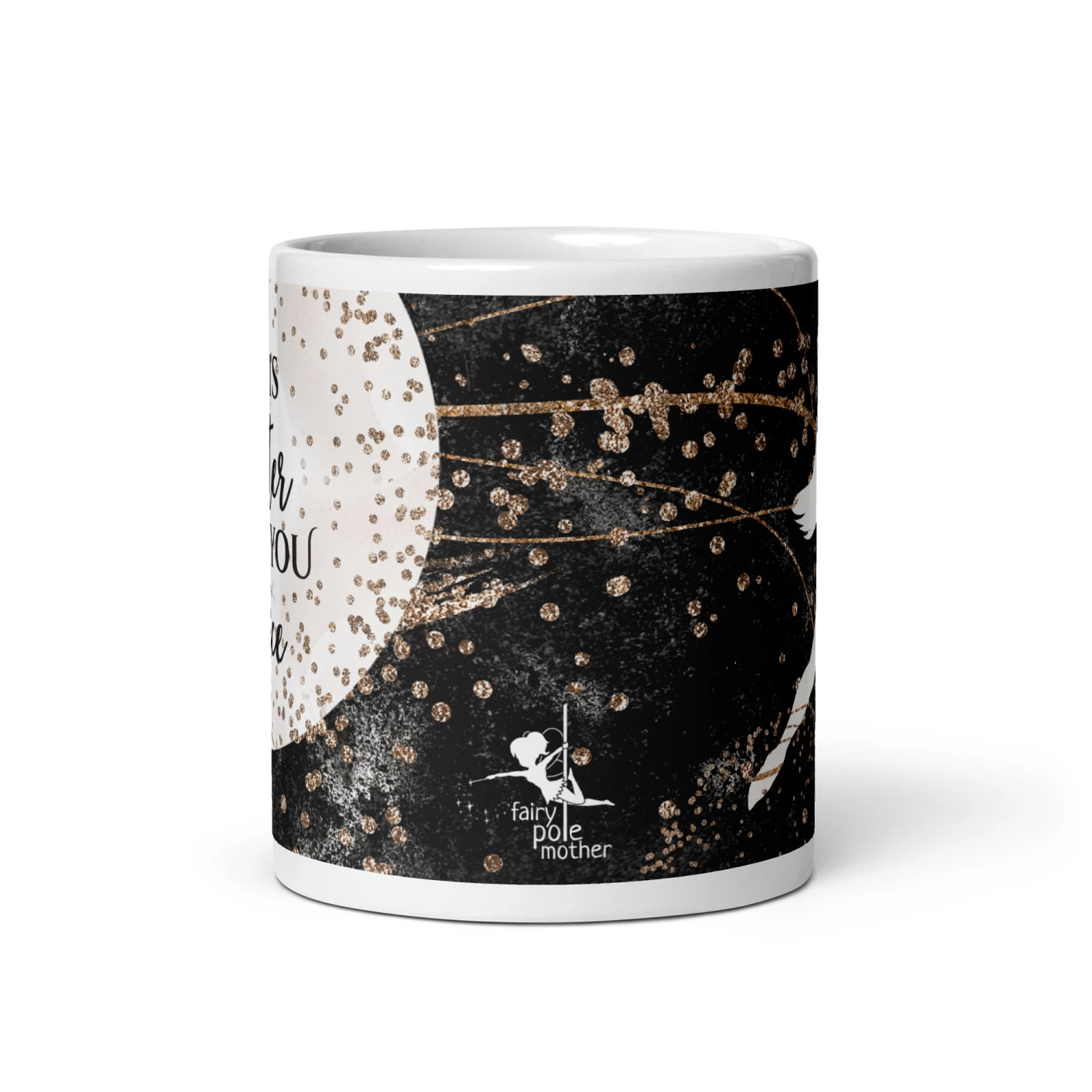 Glossy mug with a rose gold and black pole dancer print.