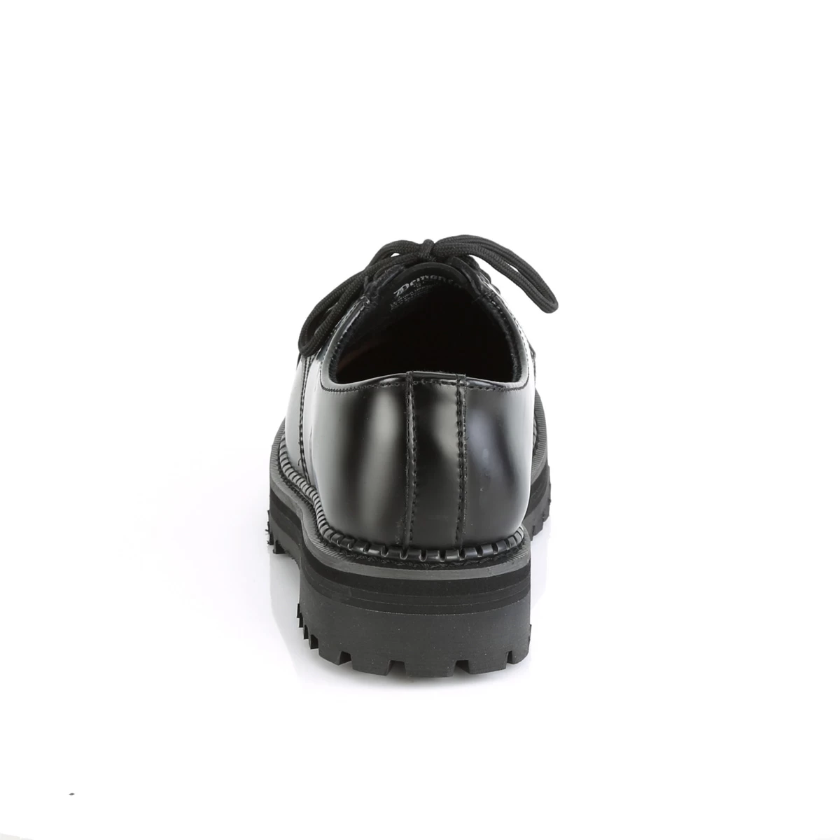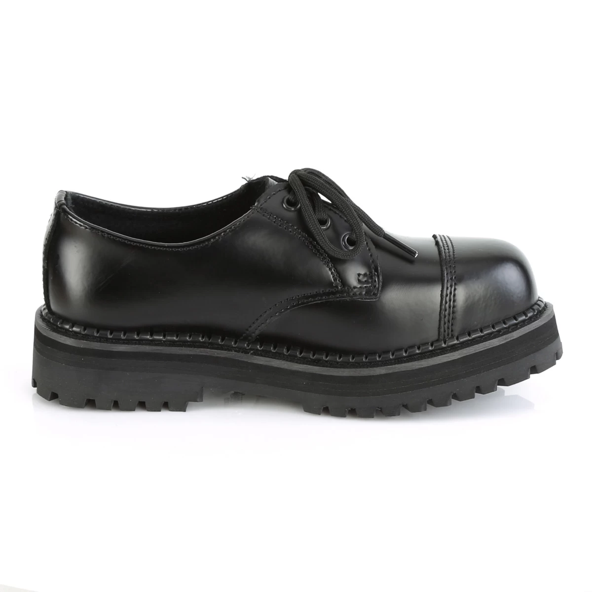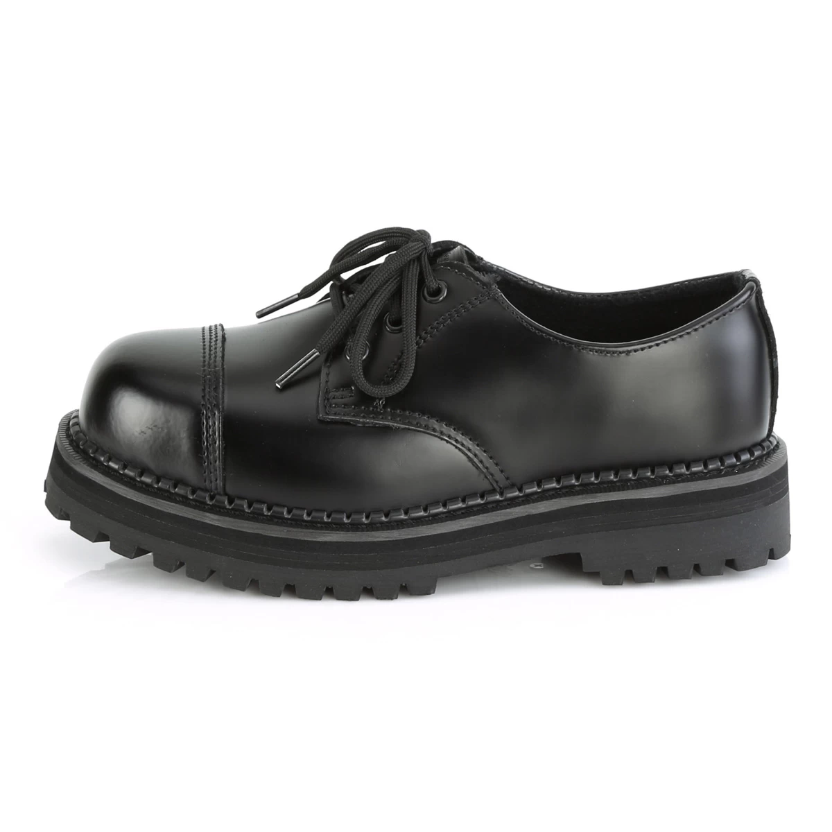 Demonia 3 Eyelet Unisex Leather Steel Toe Classic Shoe, Rubber Sole