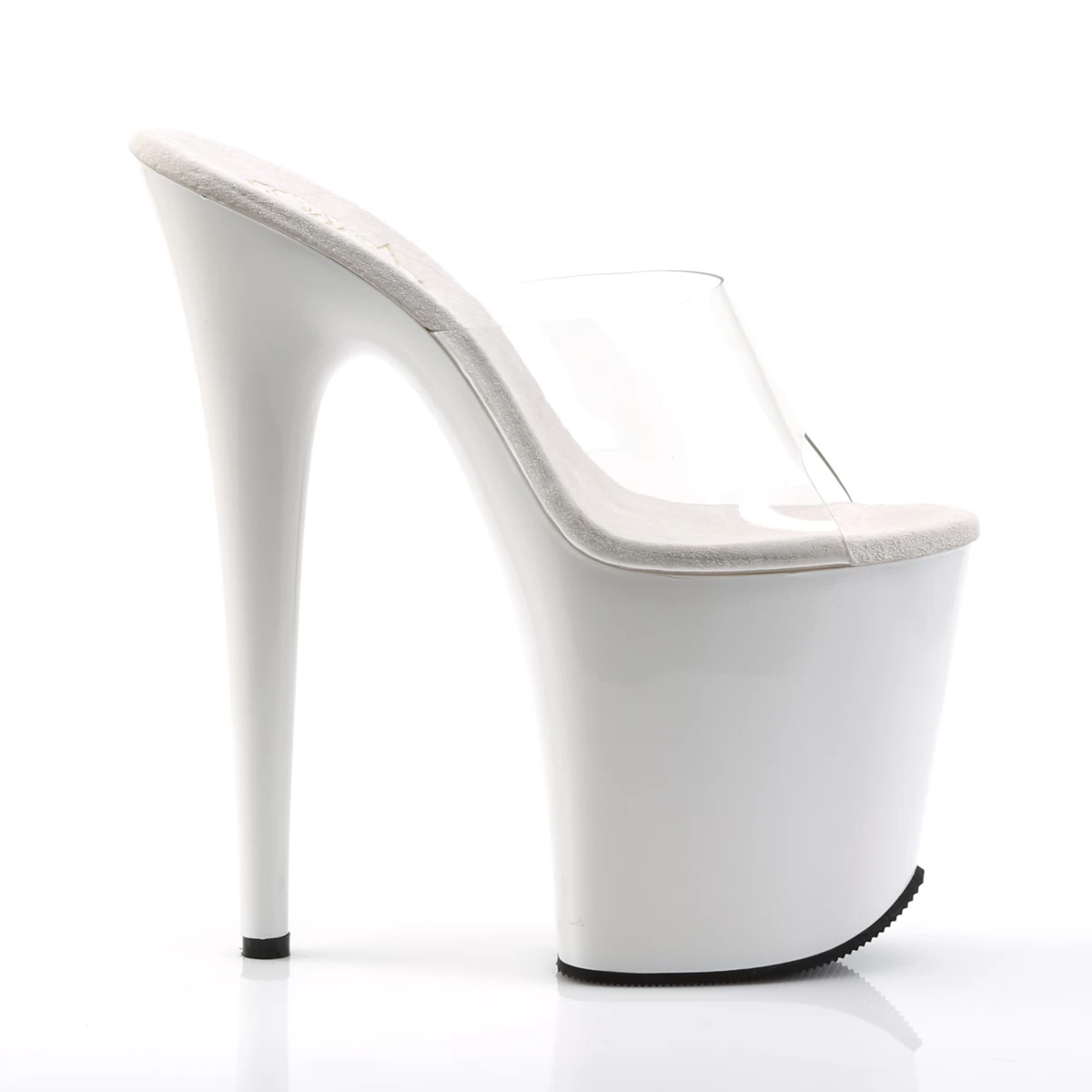8″” (20.3cm) Stiletto Heel, 4″” (10.2cm) Platform Peep Toe Slide