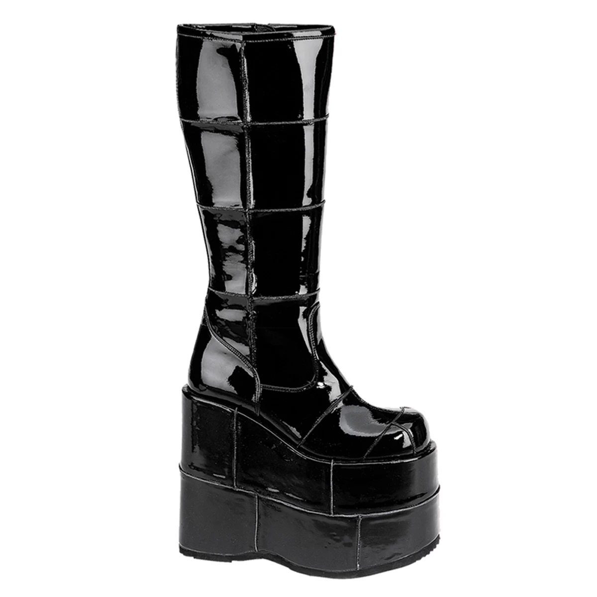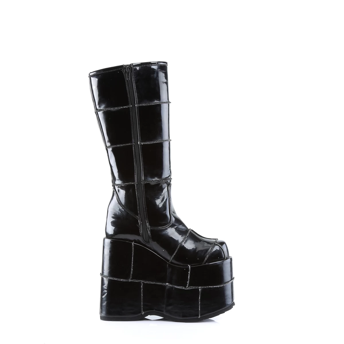 7″” (17.8cm) Platform Goth Cyber Gogo Punk Patched Knee Boot, Full Inner Side Zipper
