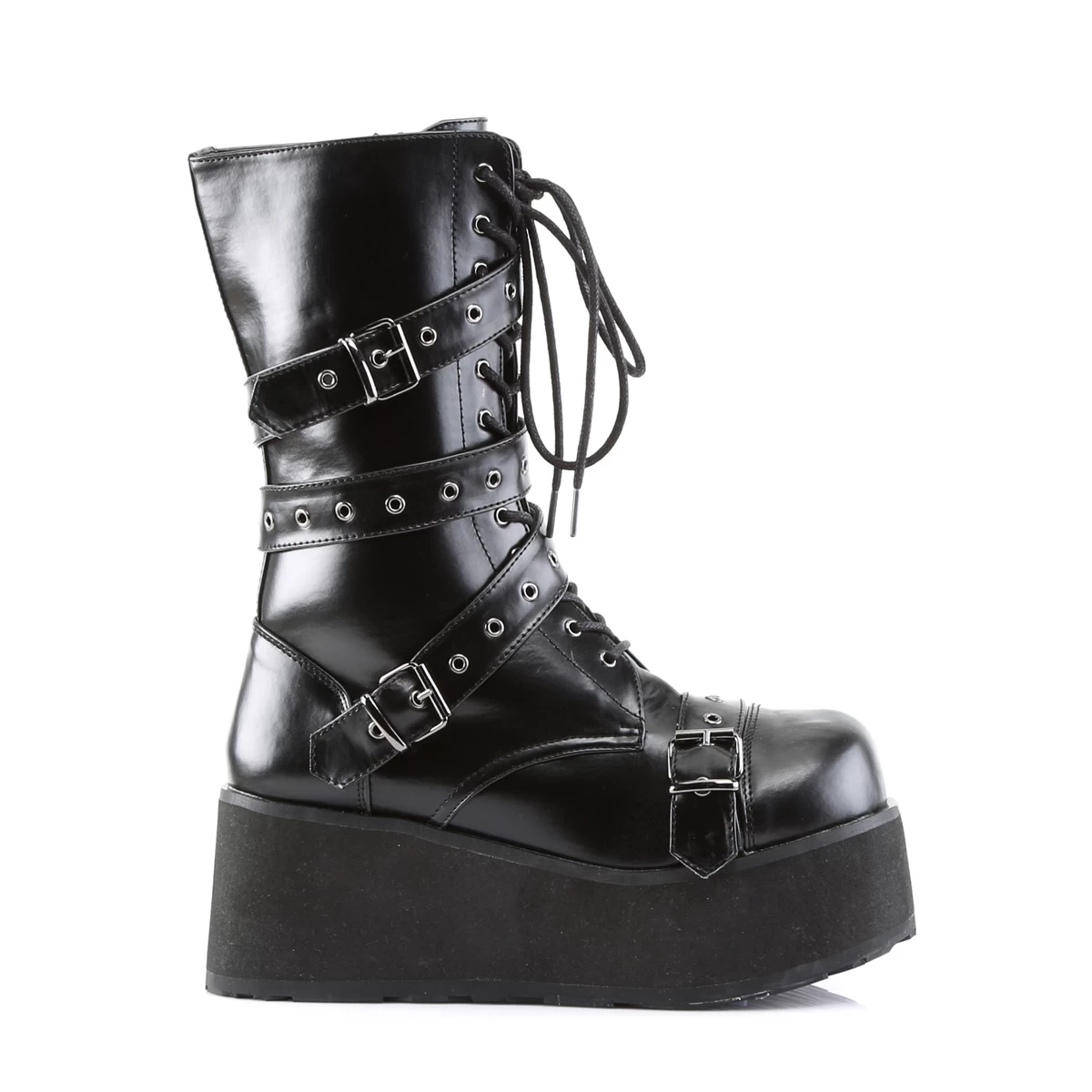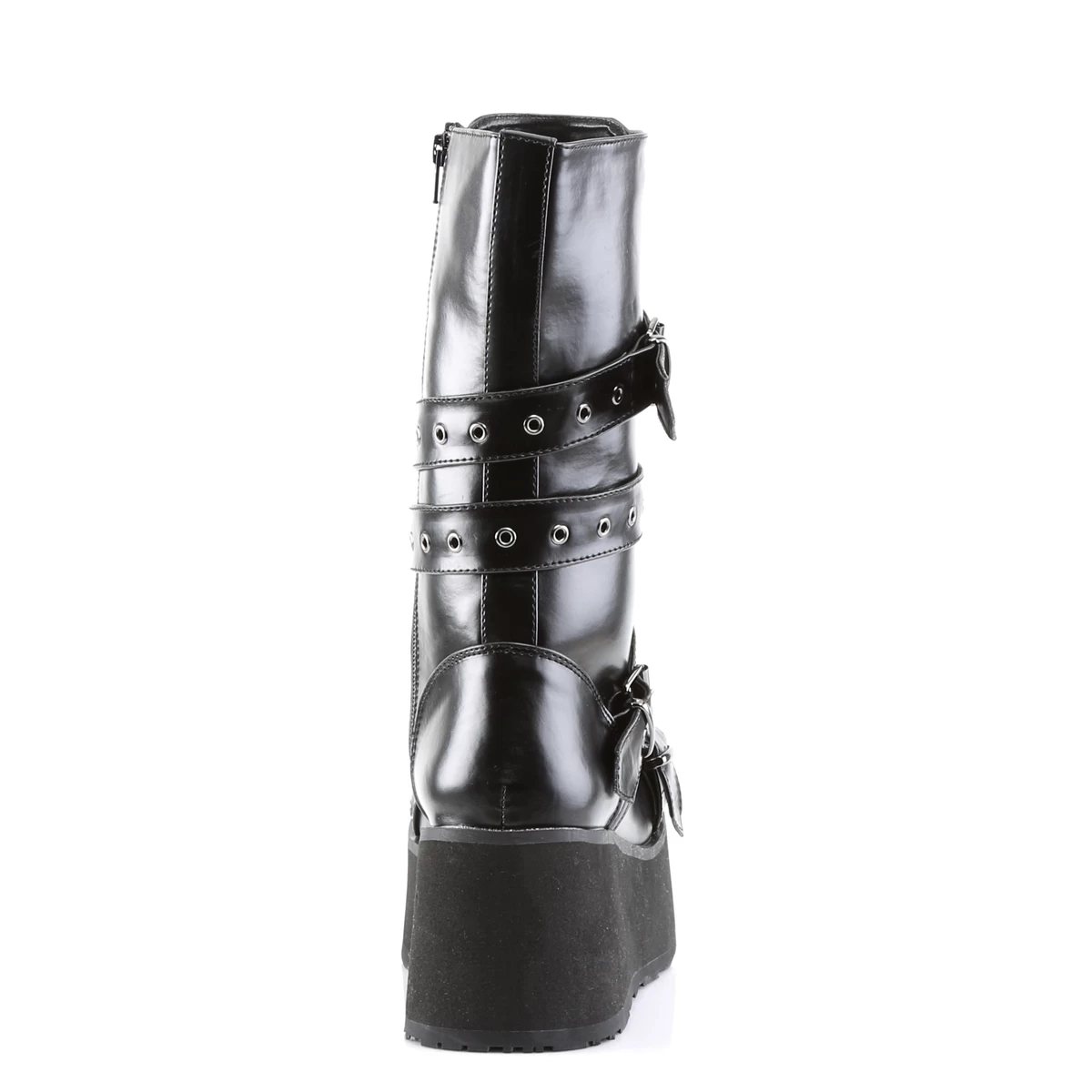 3 1/4″” (8.3cm) Platform Goth Punk Calf Boot with Wrap Around Strap, Full Inner Side Zipper