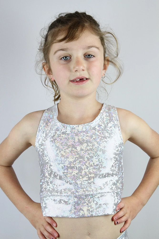 This cute crop top is designed for your little one during any kind dance, gymnastics, cheerleading or just having fun!!