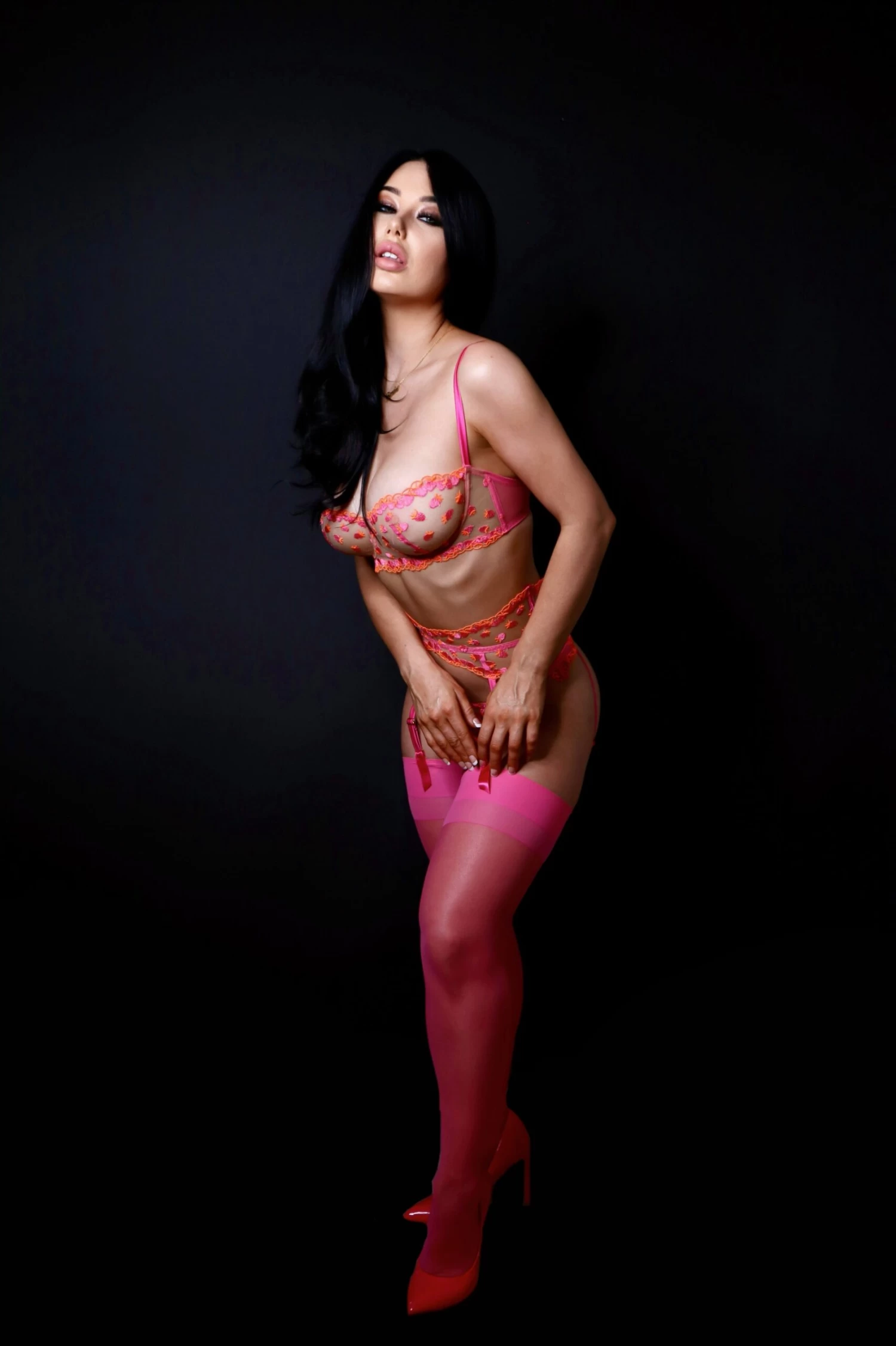 Soft suspender stockings in wild pink. These stretchy thigh highs pair perfectly with Summer’s hot pink embroidery. Pair with the Summer Waspie to complete your set, or mix and match to add a pop of colour.