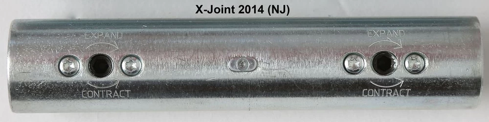 This is an NJ X-Joint, for use with pole sets and extensions purchased from X-Pole Australia after 1st April 2014, that have a code beginning NE, NS, NX, NXN, PX or NST. The new NJ style X-Joint features an extended key that replaces the old centre (round) pin to ensure the X-Joint stays locked securely in place.