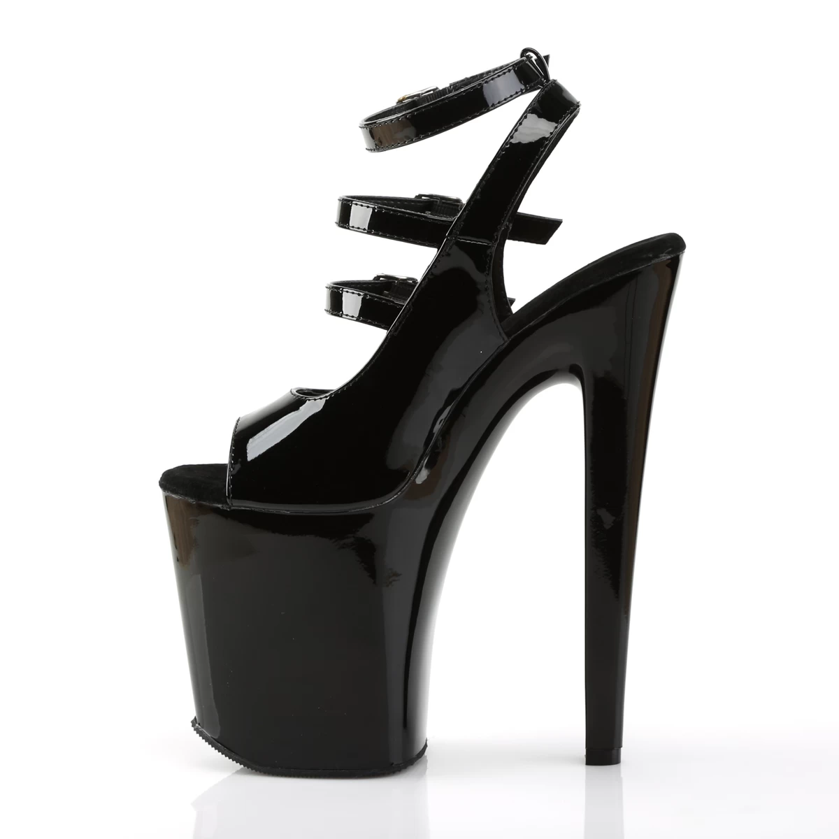 8″” (20.4cm) Heel, 4″” (10.2cm) Platform Strappy Ankle Peep Toe Sandal